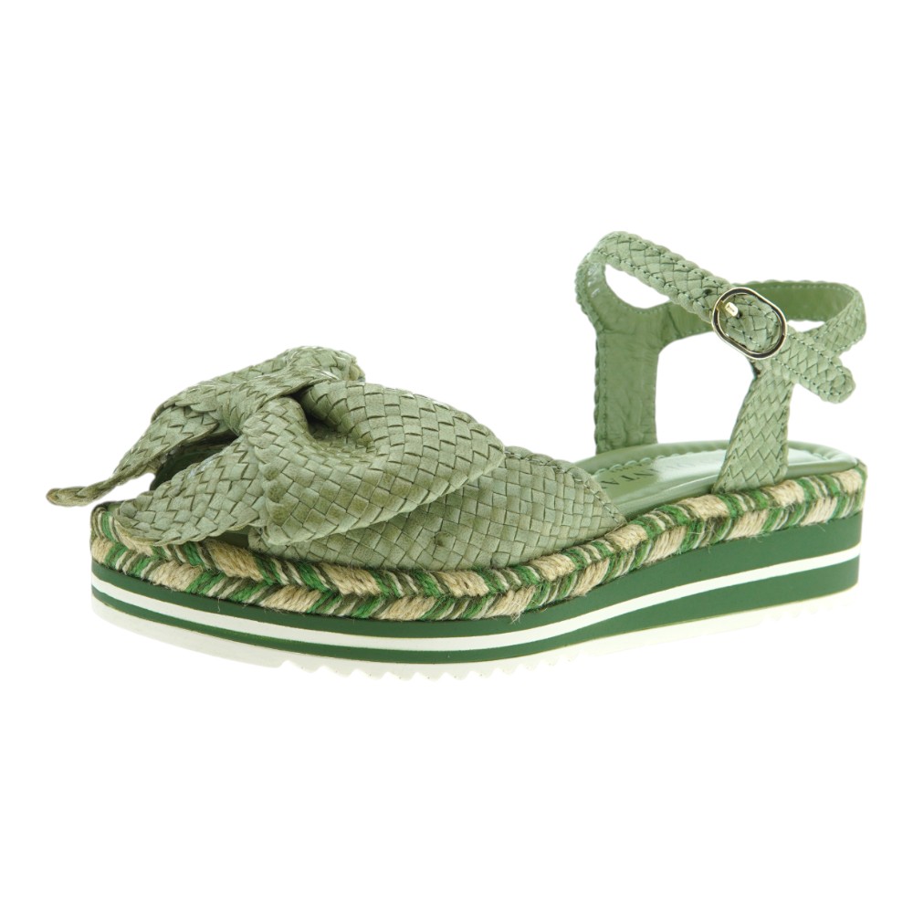 Estas sandalias mujer Pons Quintana en verde trenzado combinan plataforma de yute, diseño con lazo y cierre de pulsera. El mix ideal de comodidad y estilo.