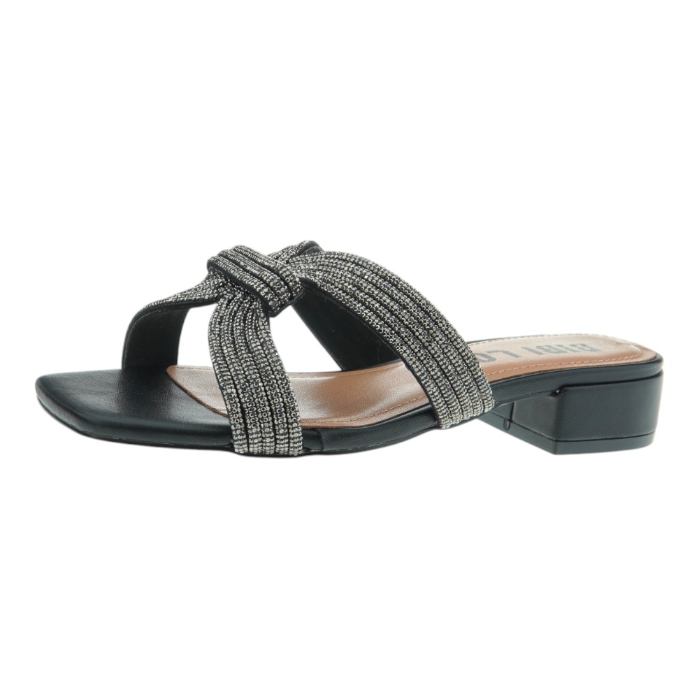 Las tiras cruzadas incorporan detalles brillantes que aportan un toque sofisticado al calzado.