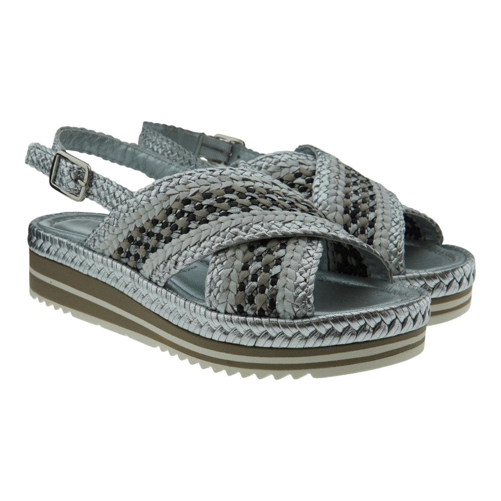 Sandalias Pons Quintana Plata con plataforma y tejido trenzado. Estilo elegante y cómodo con sujeción ajustable y plantilla acolchada para mayor confort.