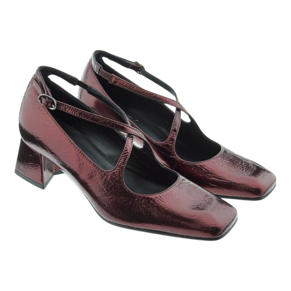 Fabricados con materiales de alta calidad, el exterior tiene un acabado brillante que resalta la belleza del color burdeos, mientras que el interior está diseñado para ofrecer comodidad durante largas jornadas. El tacón cuadrado de altura media proporciona estabilidad y comodidad, haciendo de estos zapatos una opción práctica sin sacrificar el estilo.