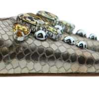 Los zapatos salón fiesta arena Zinda combinan sofisticación y exclusividad. Su acabado escamado en tono arena y las aplicaciones de pedrería en la puntera los convierten en el calzado ideal para ocasiones especiales.